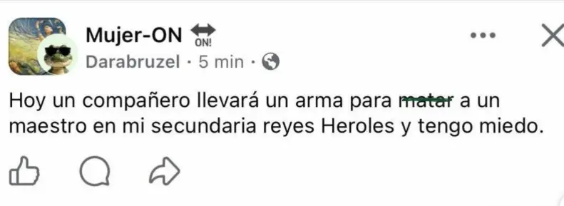Una publicación en redes sociales encendió la alerta entre madres de familia en Durango, luego de que se denunciara que un estudiante presuntamente llevaría un arma a una secundaria con la intención de agredir a un maestro. El mensaje, difundido en Facebook, generó temor e incertidumbre en la comunidad escolar.