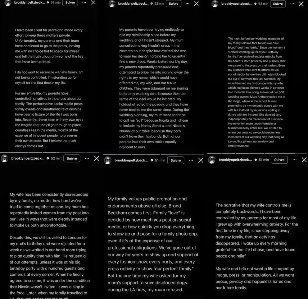 Brooklyn Beckham encendió la polémica al romper el silencio sobre su distanciamiento con David y Victoria Beckham, acusándolos públicamente de ser manipuladores, falsos y de usar a la familia como estrategia de marketing.