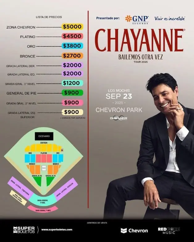 Los boletos estarán disponibles en el portal www.superboletos.com con precios que van de los 900 a los 5,000 pesos, dependiendo de la zona elegida. La preventa exclusiva para clientes Chevron Cardo iniciará el 14 de julio, mientras que la venta general comenzará el 15 de julio.