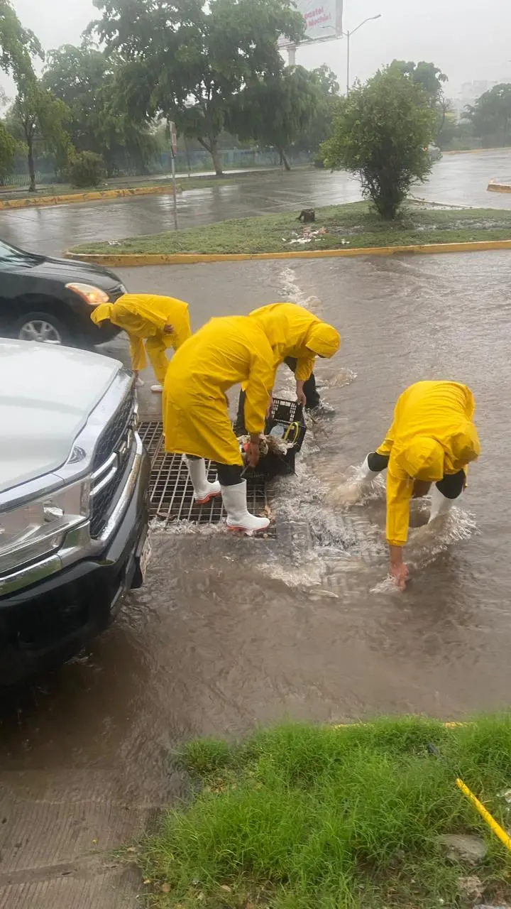 Los Mochis, Sinaloa.– Personal de la Dirección de Servicios Públicos Municipales de Ahome trabaja de manera intensa en diferentes sectores de la ciudad para destapar bocas de tormenta y alcantarillas, con el fin de evitar encharcamientos e inundaciones tras las lluvias que se están registrando en el municipio.