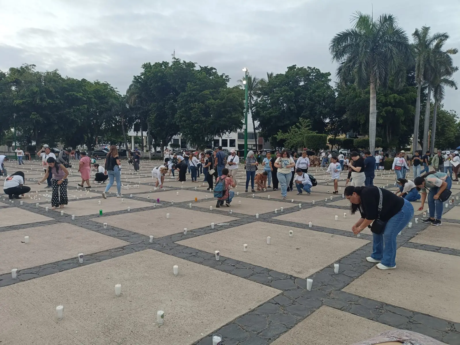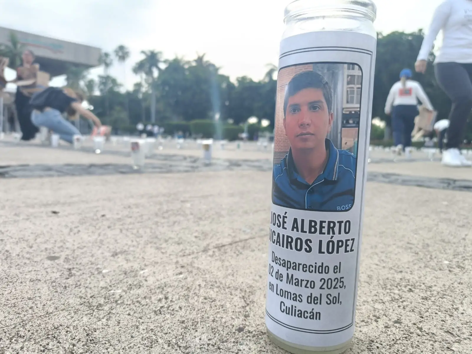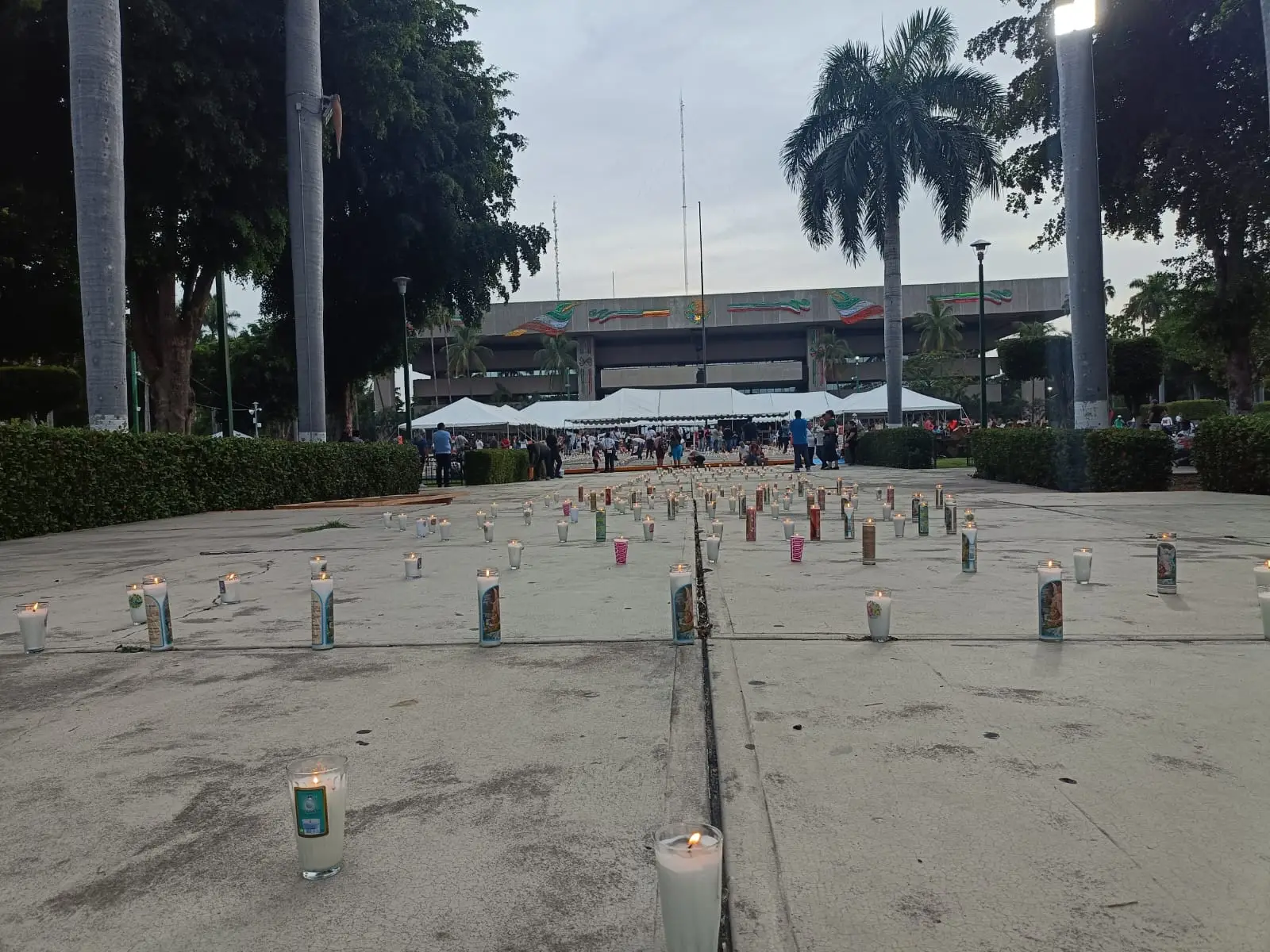 El Colectivo Sabuesos Guerras realiza acomodo de un estimado de 5 mil velas en las instalaciones del Palacio de Gobierno expresando el dolor y la desesperación a un año de la contingencia en seguridad.