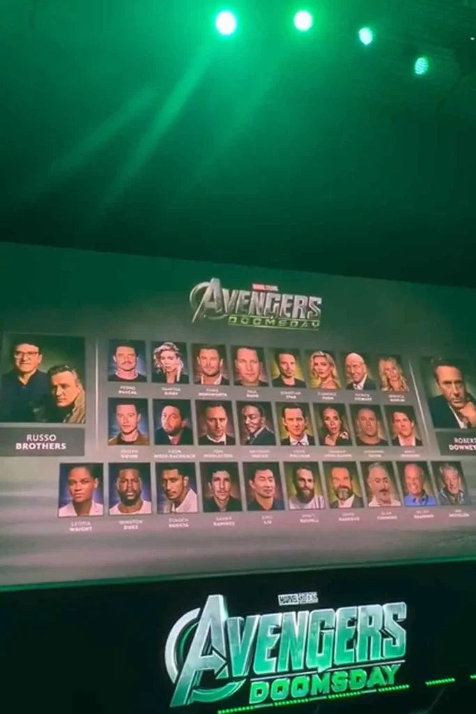 El video proyectado en el evento reúne a todos los actores anunciados meses atrás, durante aquella peculiar dinámica de las sillas plegables que se volvió viral. En la imagen aparecen figuras icónicas del universo Marvel y leyendas del cine fantástico, entre ellos Chris Hemsworth, Florence Pugh, Pedro Pascal y el regreso más sorprendente de todos: Robert Downey Jr. interpretando ahora a Victor von Doom.